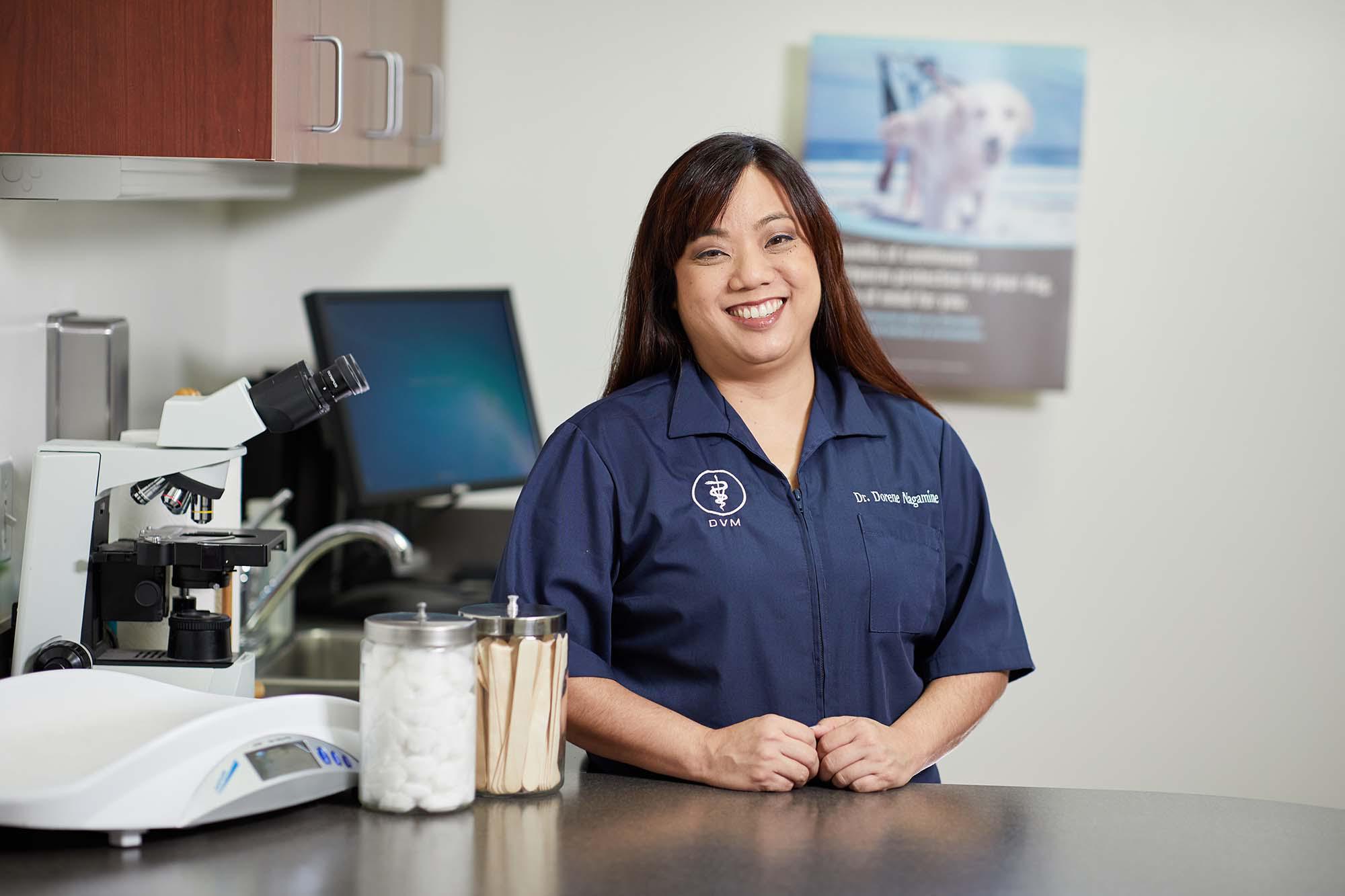 Dr. Nagamine graduated from Moanalua High School and attended UH Manoa, where she earned a bachelor’s degree in Animal Sciences. She earned her veterinary medicine degree from Washington State University, and returned to Oahu to practice. She loves meeting new people and their beloved family members (pets). And she remains a die-hard UH football and volleyball fan.