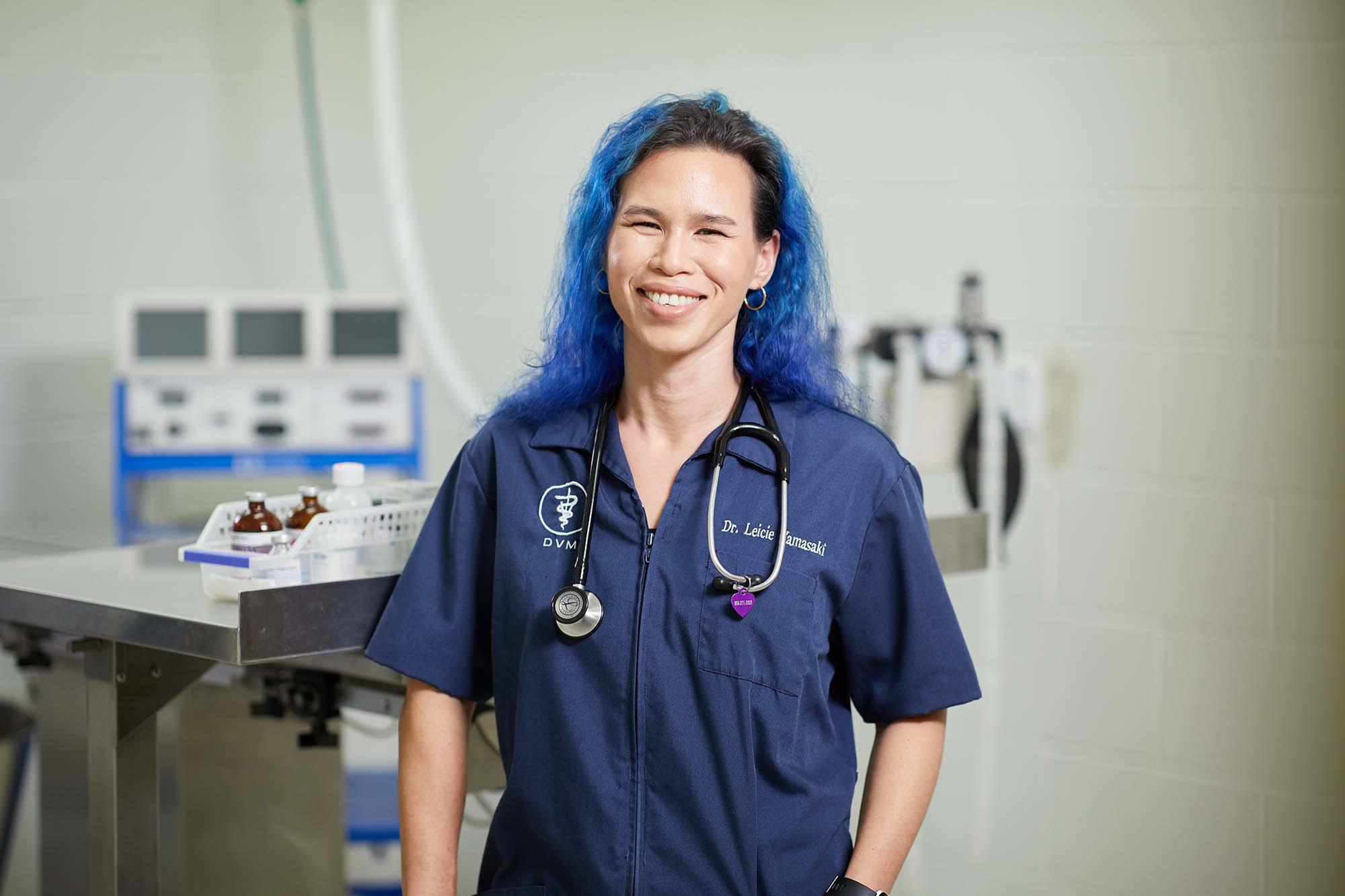 Dr. Yamasaki grew up in Pearl City and graduated from Mid-Pac. She received her undergraduate degree from UC Davis. During vet school, she furthered her studies abroad, learning conservation medicine in South Africa and acupuncture in Beijing. After earning her DVM degree from Kansas State, she interned in New York before returning home. She’s been practicing at Waipahu Waikele Pet Hospital since 2014.
