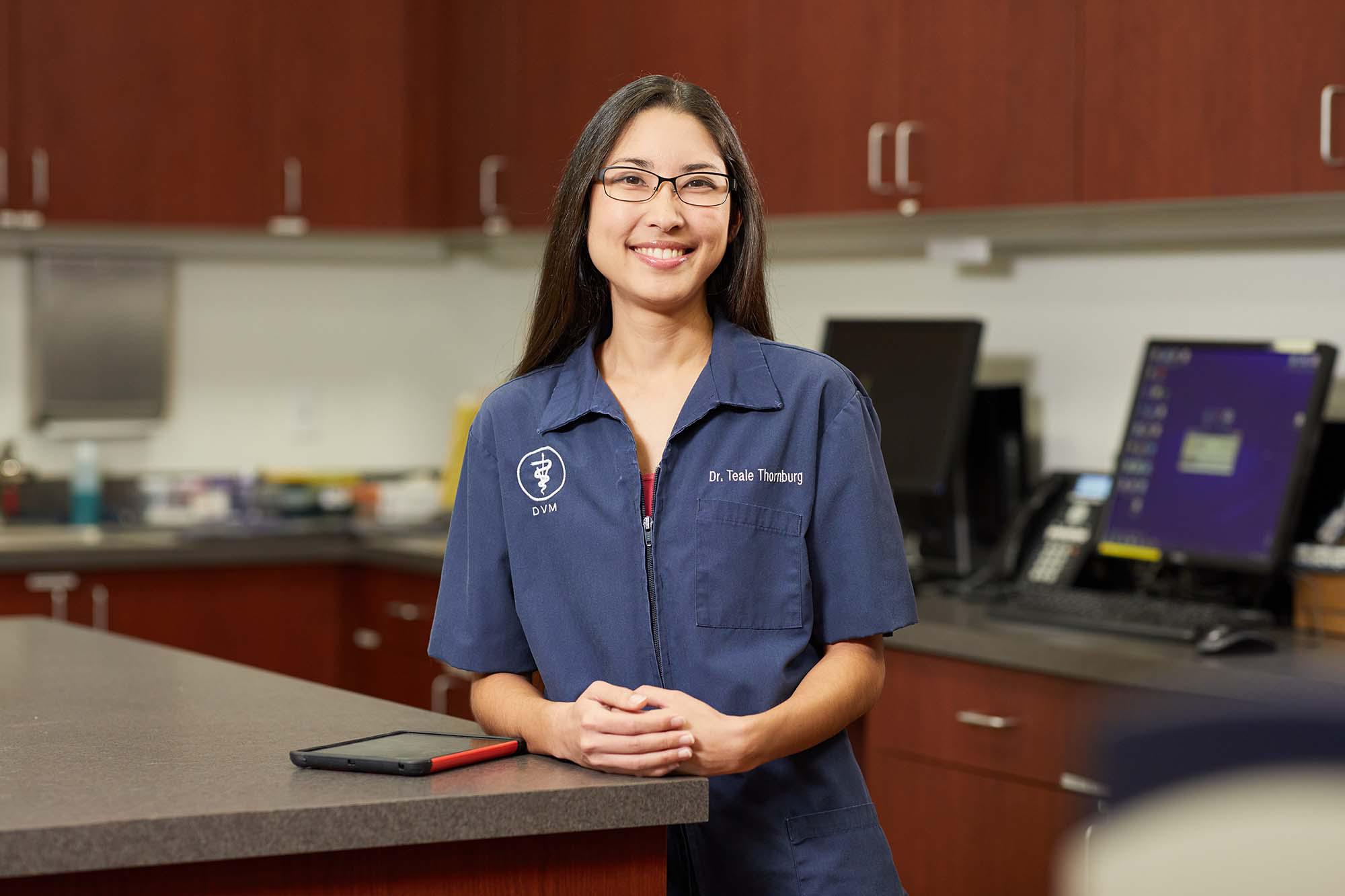 Dr. Teale Thornburg was born and raised on the island of Oahu and attended Pearl City High School. She received her Bachelor’s degree in Animal Science at UH, then completed her DVM at Colorado State University, where she trained in veterinary acupuncture through CuraCore. After receiving her DVM, Dr. Thornburg returned to Hawaii and began her veterinary career at Waipahu Waikele Pet Hospital in 2017. Dr. Thornburg’s special interests include alternative medicine (such as acupuncture), preventive medicine, dermatology, and exotic pets. Her love for exotic pets stemmed from many years of owning tropical fish.